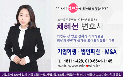 로펌 윈앤윈 기업회생연구소 총괄변호사 채혜선입니다.
