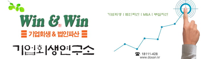‘로펌 윈앤윈 기업회생연구소’는 기업회생 및 법인파산, M&A, 자금조달 및 투자유치 관련해서 기업고객과 동반성장 할 수 있도록 지속적인 자문 및 상담을 지원하며 신속하고 정확한 문제해결을 통한 ‘고객 중심의 법경영학적 법률서비스’를 제공하고 있습니다.